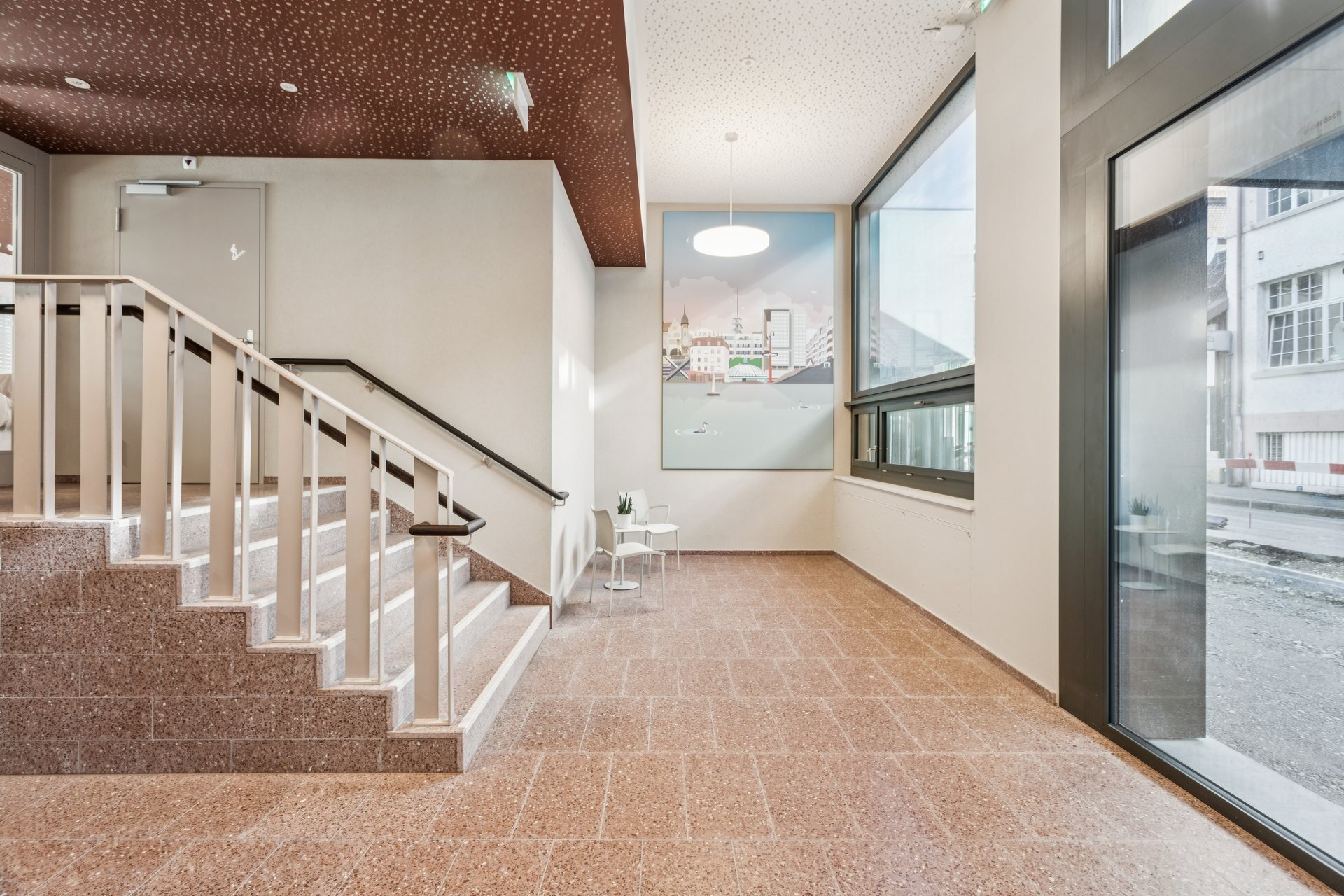Even from the outside, the building appears inviting and contemporary. The architecture elegantly echoes the exterior design language on the inside. Upon entering the building, an atmosphere of warmth and generosity unfolds. High-quality materials characterize the interior, and carefully selected colors ensure a sense of well-being and timeless elegance.